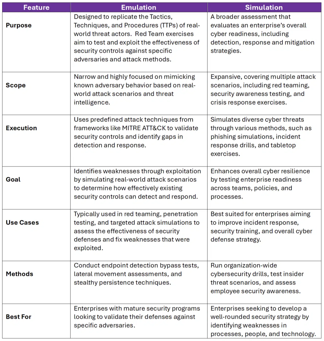 Penetration Testing Services Cloud Pentesting Penetration Network Pentesting Application Pentesting Web Application Pentesting Social Engineering March 7, 2025 On this page Adversarial Exposure Validation (AEV): The Intersection of Emulation and Simulation Introduction Understanding the differences between adversary emulation and simulation is important as they are not the same when securing your attack surface against real-world attacks. One of the key methods in proactive security is Adversarial Exposure Validation (AEV), a core component of Continuous Threat Exposure Management (CTEM) that ensures organizations continuously assess their security posture against real-world threats. While AEV primarily falls under adversary simulation, it incorporates elements of adversary emulation when needed, making it a dynamic and adaptive security testing approach. AEV helps security teams understand their weaknesses by simulating attacker behavior, allowing them to refine their defenses before actual threats emerge. However, it is essential to understand the differences between adversary simulation and adversary emulation – two distinct approaches that serve different security objectives. Understanding these differences ensures that enterprises adopt an effective offensive security strategy based on both their business and security goals. What is Adversary Simulation vs. Adversary Emulation? Security leaders must consider their security objectives and how they align with business goal before selecting between adversary emulations and adversary simulations. There is overlap between the two – as AEV can combine activities associated with both adversary emulation and simulation – but first let’s explore the definitions of each and how they differ? What is Adversary Simulation? Adversary simulation is a strategic cybersecurity assessment designed to measure an enterprise’s ability to detect, respond to, and recover from cyber threats. By simulating real-world attack scenarios, this approach evaluates security processes, team coordination, and incident response effectiveness. It helps enterprises uncover potential weaknesses, refine their defenses, and enhance overall cyber readiness against a wide range of attack techniques. What is Adversary Emulation? Adversary emulation is a focused security testing method where cybersecurity experts, often red teams, mimic the tactics, techniques, and procedures (TTPs) of real-world threat actors. Core frameworks like MITRE ATT&CK® is used for adversary emulation in red teaming while OWASP Top 10, for example, can support red team operations when assessing certain types of threats, whether web-based, AI-specific, or otherwise. Adversary Emulation Vs. Simulation How AEV Integrates Aspects of Both Emulation and Simulation Rather than combining adversary emulation and simulation into a single hybrid model, AEV operates within adversary simulation but incorporates targeted emulation when necessary. This allows enterprises to achieve a balanced approach, benefiting from both the realism of emulation and comprehensive assessment capabilities of simulation within the CTEM framework. AEV is not a strict fusion of emulation and simulation but rather a simulation-driven validation process that integrates emulation techniques as needed. This ensures that enterprises not only test for known threats but also prepare for unknown evolving attack scenarios, making it an essential element of proactive cybersecurity within CTEM. 1. Adversary Simulation in AEV AEV validates an enterprise’s ability to detect, respond to, and mitigate threats by simulating a wide range of attack scenarios. It includes attack exercises beyond technical exploitation, such as incident response drills, phishing campaigns, insider threat simulation, and security awareness assessments. The focus is on readiness assessment – ensuring the people, processes, and technologies work together to defend against threats. 2. Adversary Emulation in AEV (Where Applicable) While AEV is simulation-driven, it often leverages adversary emulation techniques to test defenses against specific real-world attack tactics. This is executed using frameworks like MITRE ATT&CK®, where AEV may replicate known threat actor behaviors to evaluate how security controls respond to particular TTPs. However, AEV does not focus solely on emulation – instead, it applies emulation selectively within a broader, continuous validation process. How To Choose the Right Approach for Your Organization Choose Adversary Emulation if: Your primary goal is to test defenses against a specific threat actor. You need a focused evaluation of how well your security controls detect and respond to an attack. Your security teams want to refine its security strategies based on real-world attack patterns. Choose Adversary Simulation if: You want to assess the overall security posture of your organization. Your focus is on evaluating security awareness, incident response, and risk management strategies. You aim to identify gaps in policies, procedures, and team coordination in handling threats. For maximum effectiveness, enterprises should consider integrating both approaches, using emulation for deep-dive security assessments and simulation for comprehensive cyber resilience testing. Challenges and Solutions in Adversary Testing 1. Resource Constraints Emulation and simulation require specialized skills and tools, which may be limited in some organizations. Security providers normally use traditional manual, human-led red teaming but as AI has become an integral part of cybersecurity, some innovative providers like BreachLock provide autonomous pentesting and red teaming. 2. AI Automated Attacks Cyber threats are constantly changing and becoming more sophisticated as attackers leverage AI to automate reconnaissance, craft highly personalized phishing attacks, evade detection through adaptive malware, and exploit vulnerabilities at an unprecedent